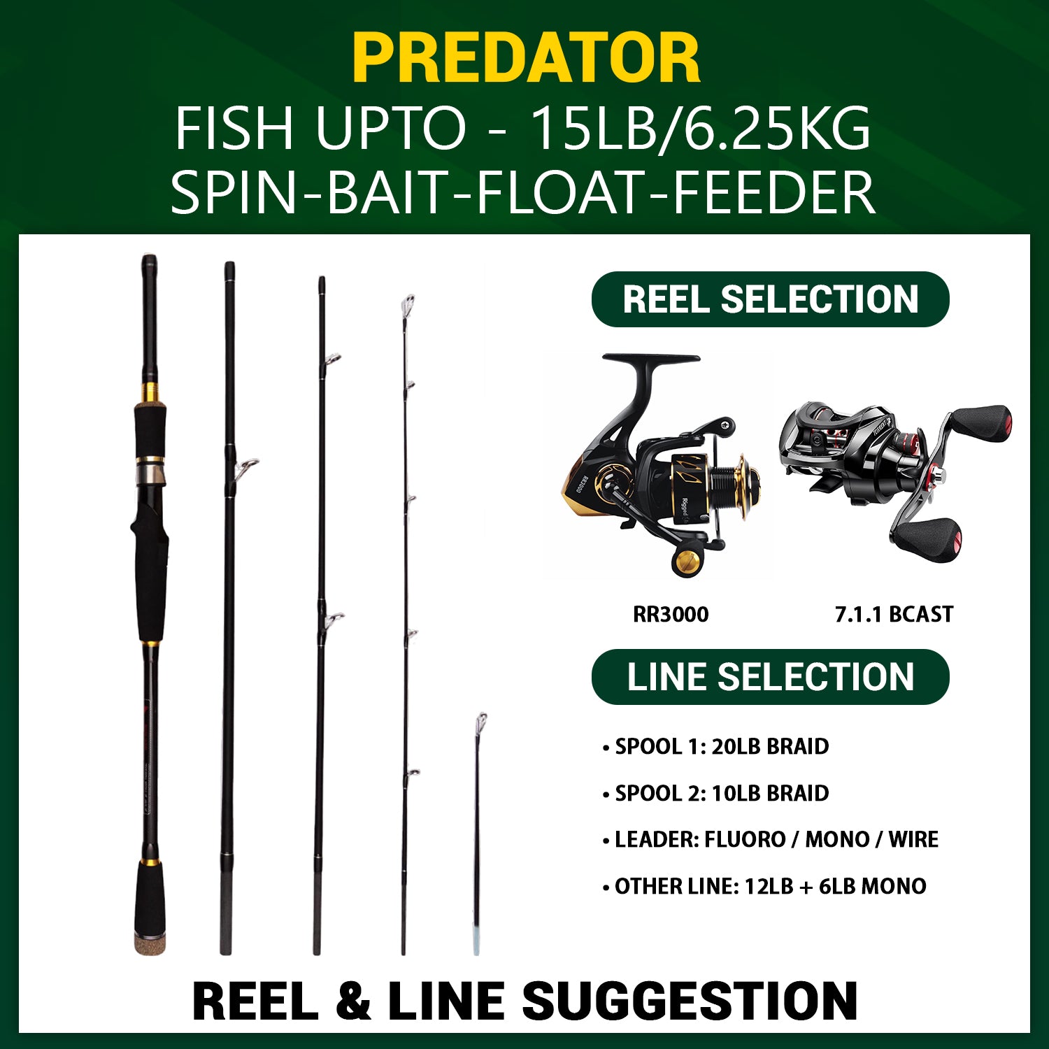 - Ideal reel 3000-6000 fixed spool or bait cast