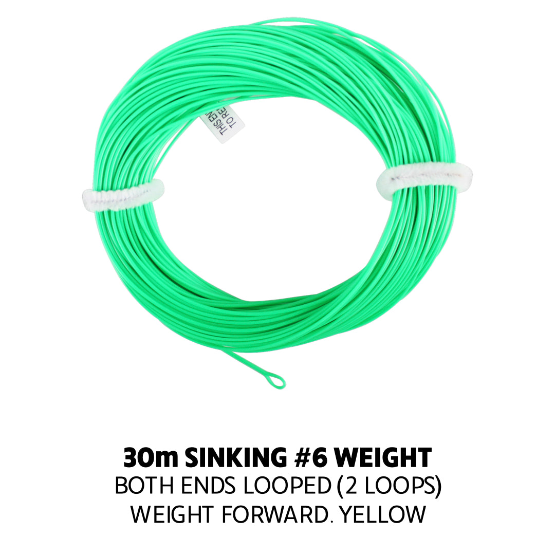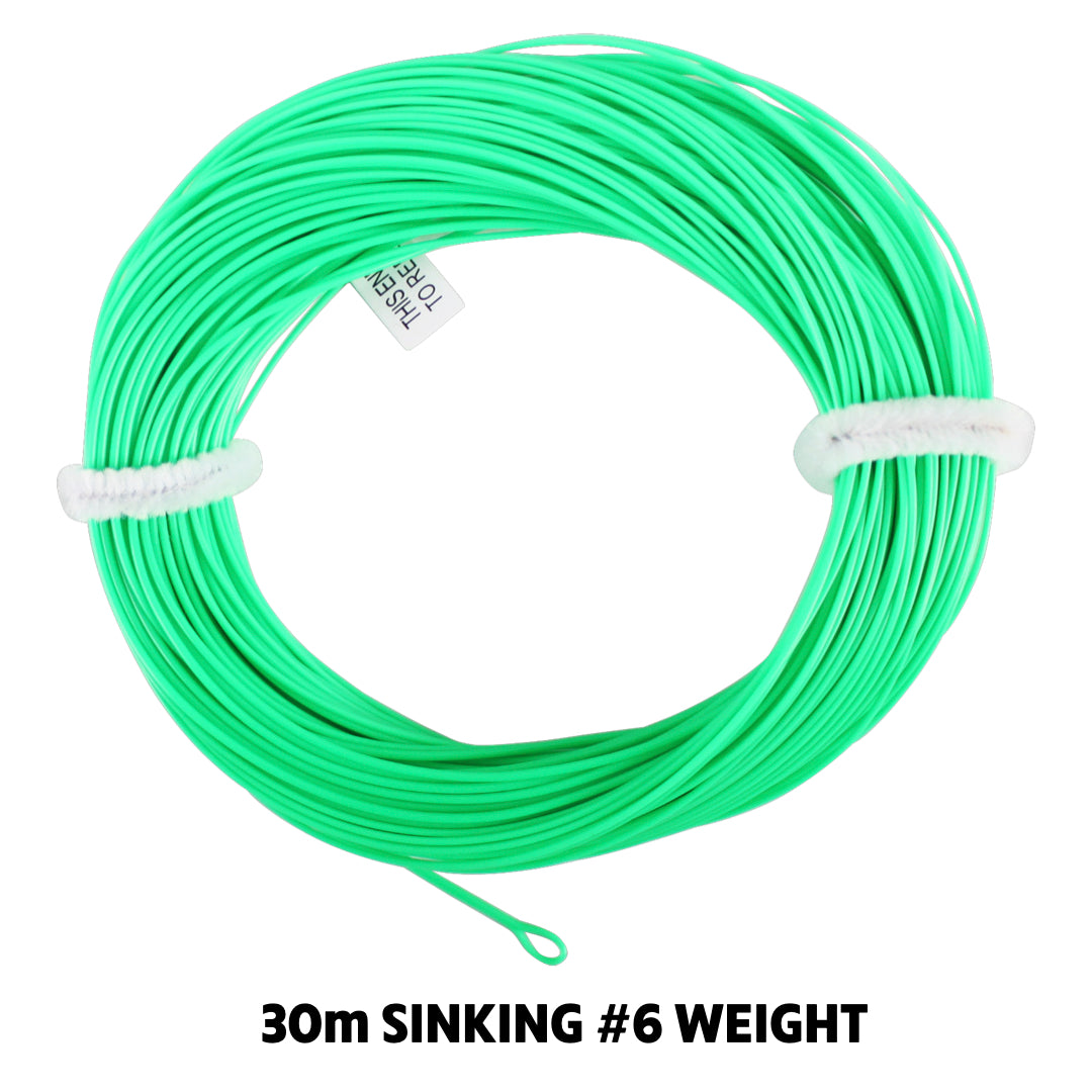 #6 Premium Fly Line Sinking (Green). Double Welded Loops. Weight Forward. WF6S